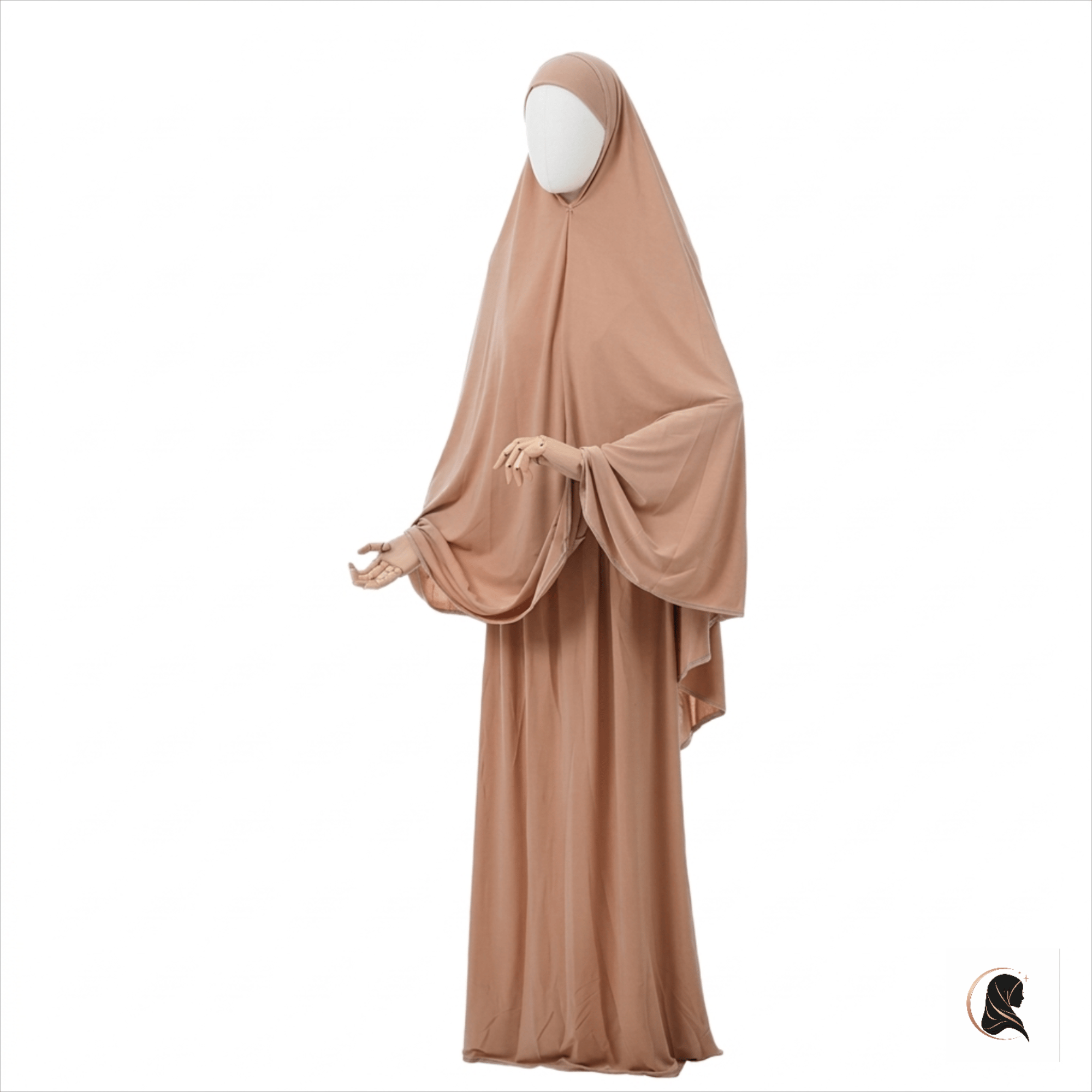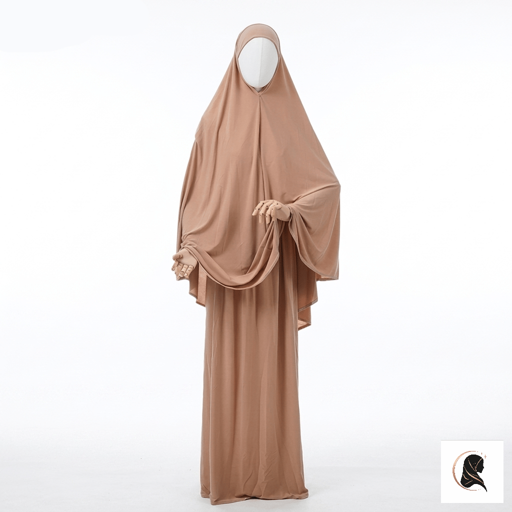 -Timeless Sophistication: A gracefully draped khimar paired with a matching floor-length skirt, creating a seamless and polished look perfect for prayer, gatherings, or everyday wear.