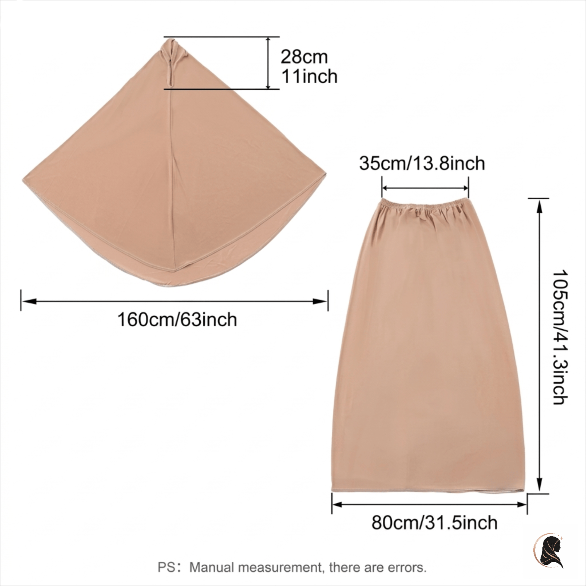 -Set Includes: 1 x Long Khimar, 1 x Maxi Skirt